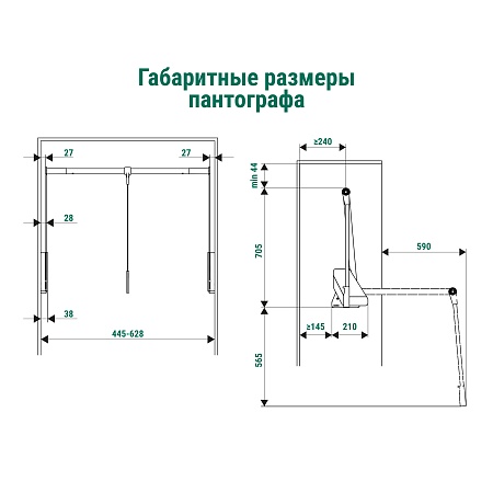 Складская программав наличии Артикул 2382787021 Пантограф для гардеробной стандартный, Конеро, W 445-628 мм, нагрузка 0,5-12 кг, ЧЕРНЫЙ 26 040 ₽ Заказать