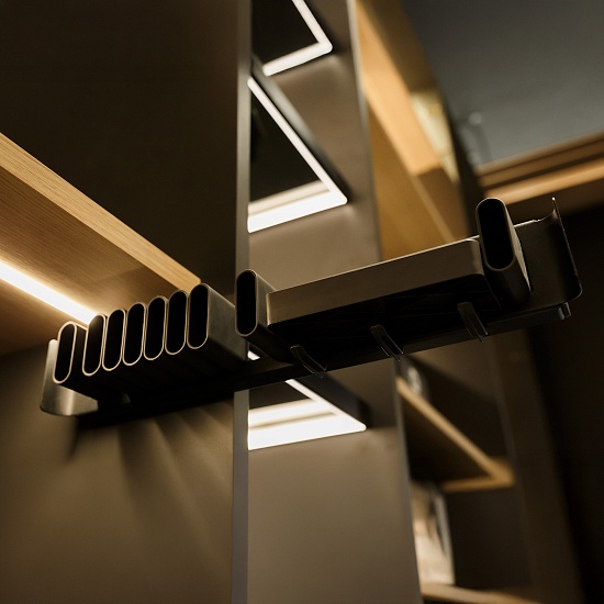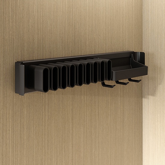 Держатель для галстуков и ремней с полочкой выдвижной 450 мм, Конеро, D 475 мм, ЧЕРНЫЙ
