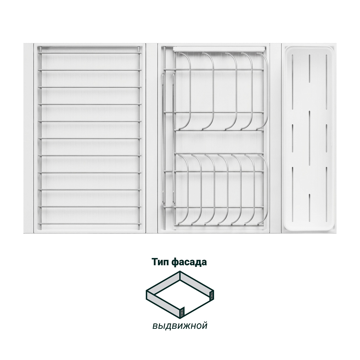 Рама; крепление к фасаду; 2 направляющих; модуль для посуды большой; модуль для столовых приборов; модуль с решеткой большой