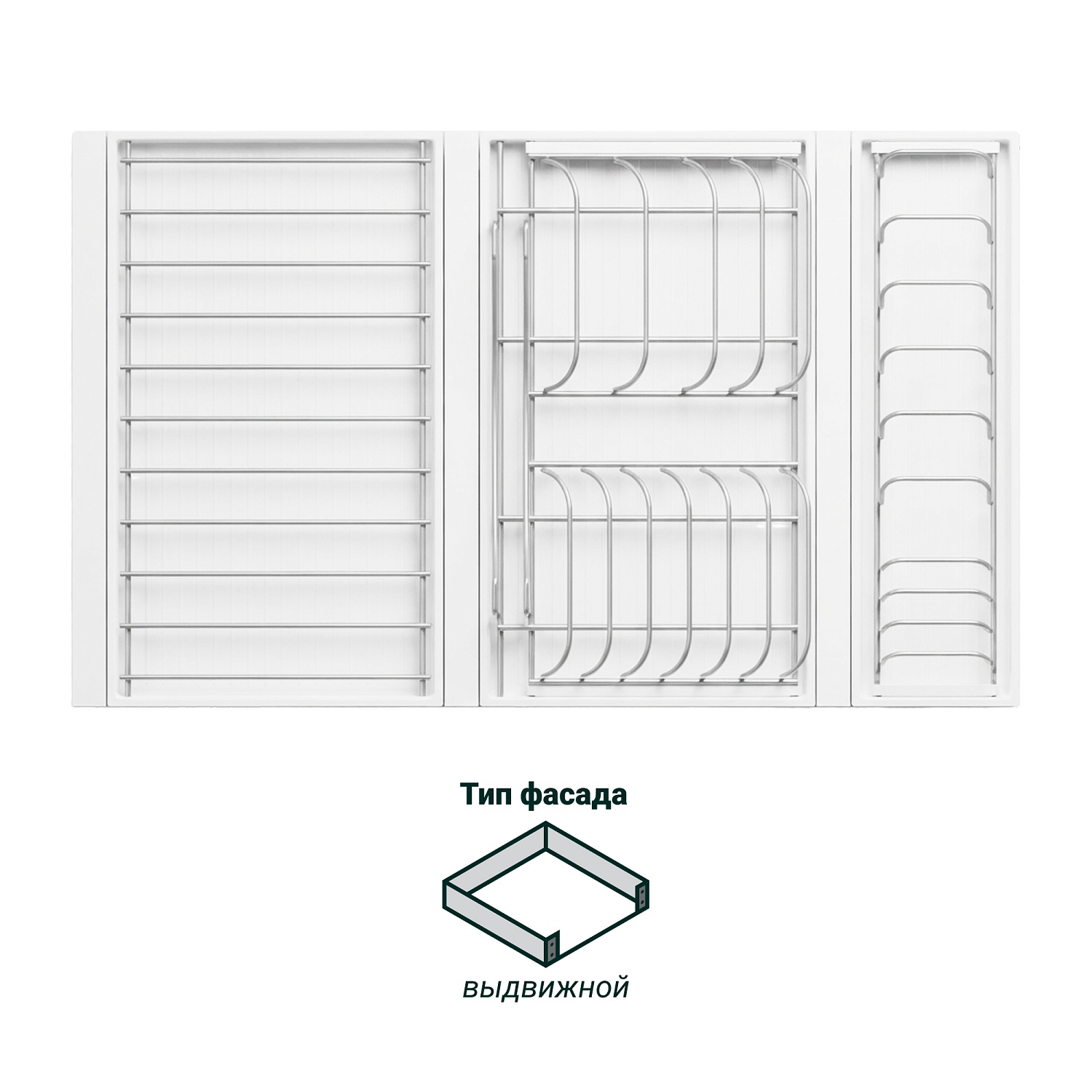 Рама; крепление к фасаду; 2 направляющих; модуль для посуды большой; модуль для посуды малый; модуль с решеткой большой