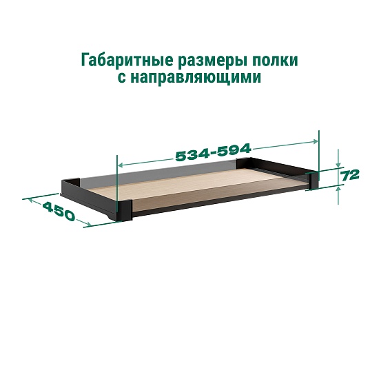 Комплектация КОМПЛЕКТ Полка внутренняя выдвижная со стеклом 450 мм, Конеро H 72 W 534-594 мм, без дна, ЧЕРНЫЙ