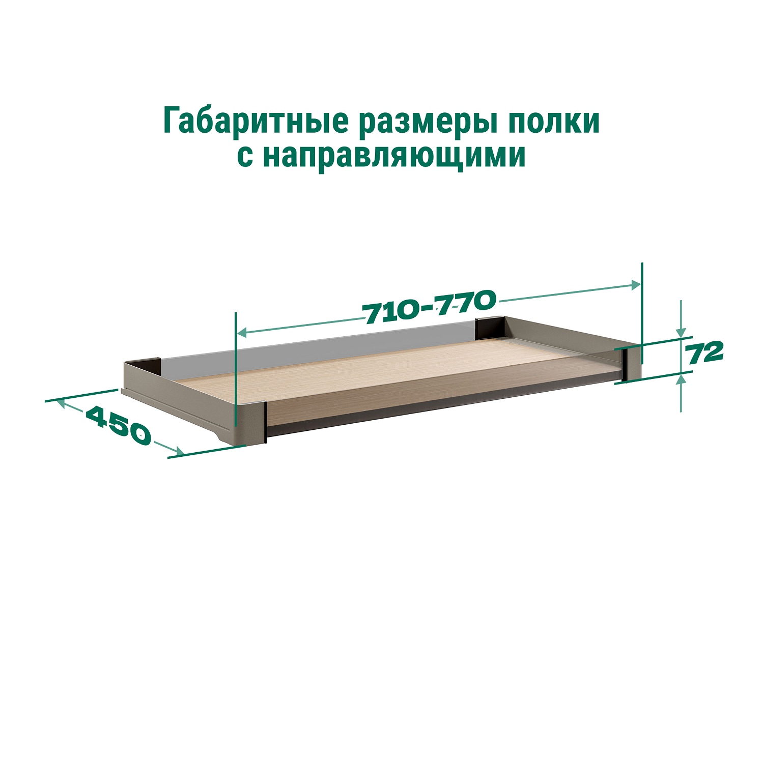 Комплектация КОМПЛЕКТ Полка внутренняя выдвижная со стеклом 450 мм, Конеро H 72 W 710-770 мм, без дна, ШАМПАНЬ