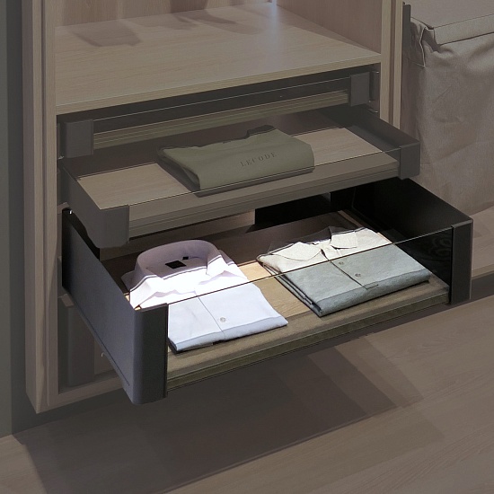 Комплектация КОМПЛЕКТ Полка внутренняя выдвижная со стеклом 450 мм, Конеро H 168 W 710-770 мм, без дна, ЧЕРНЫЙ